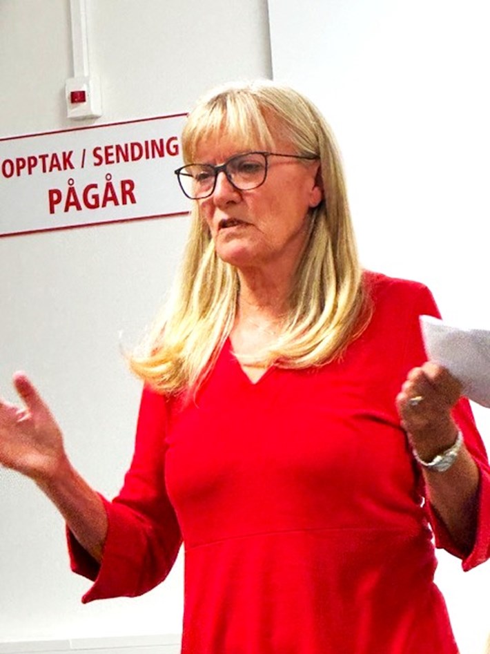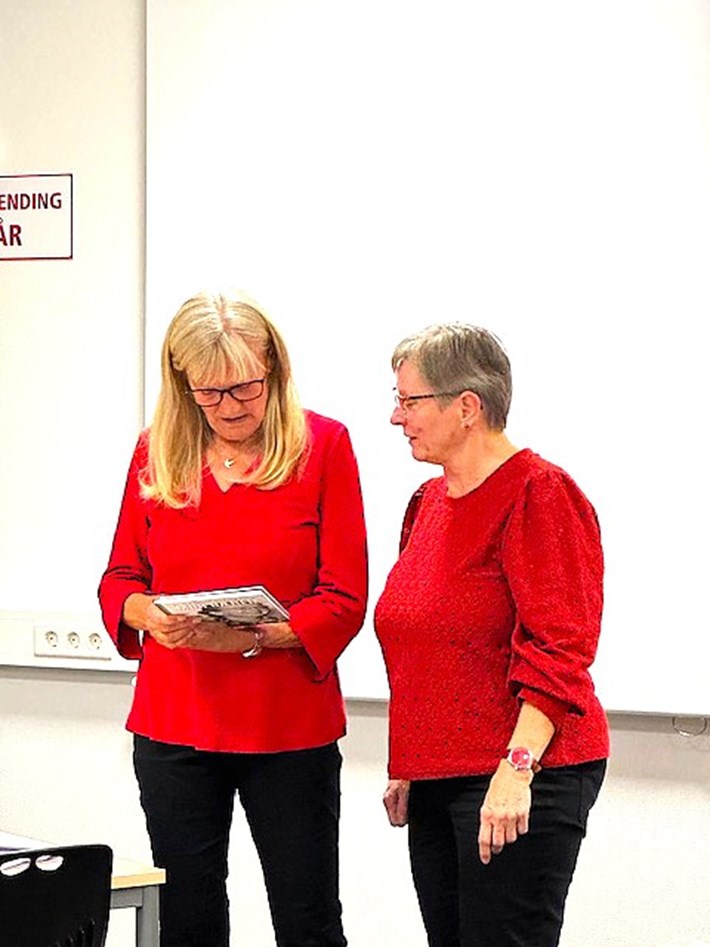 Leder for ansvarlig gruppe "Kvinner i krise" i Kongsvinger Soroptimistklubb, Britt Lavik, takket Karin for et flott foredrag og overrakte henne boken om Astrid Brinck "Mor Bæreia", skrevet av Rigmor Noer, som er medlem i Kongsvinger-klubben.